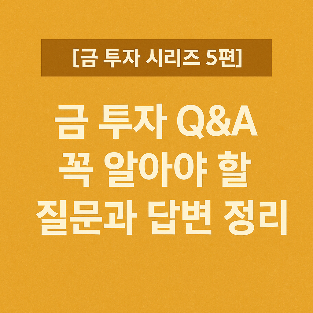 금 시리즈 1편 ~4편까지 공부하면서 마지막으로, 이번 글에서는 투자자들이 자주 묻는 질문들을 모아 Q&A 형식으로 쉽게 정리했습니다.